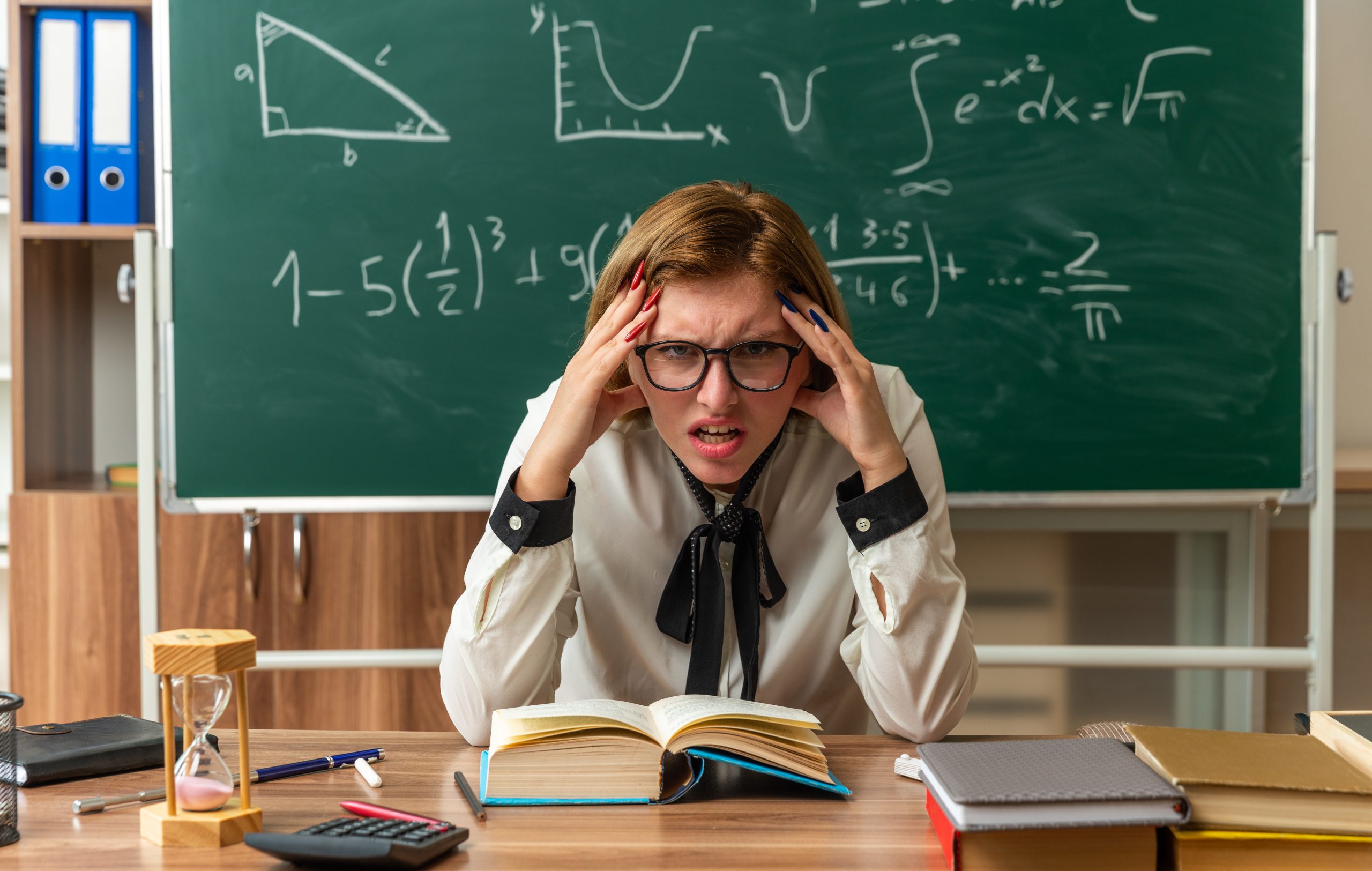 unpleased-young-female-teacher-wearing-glasses-sits-table-with-school-tools-putting-hands-temples-classroom-2048x1300.jpg
